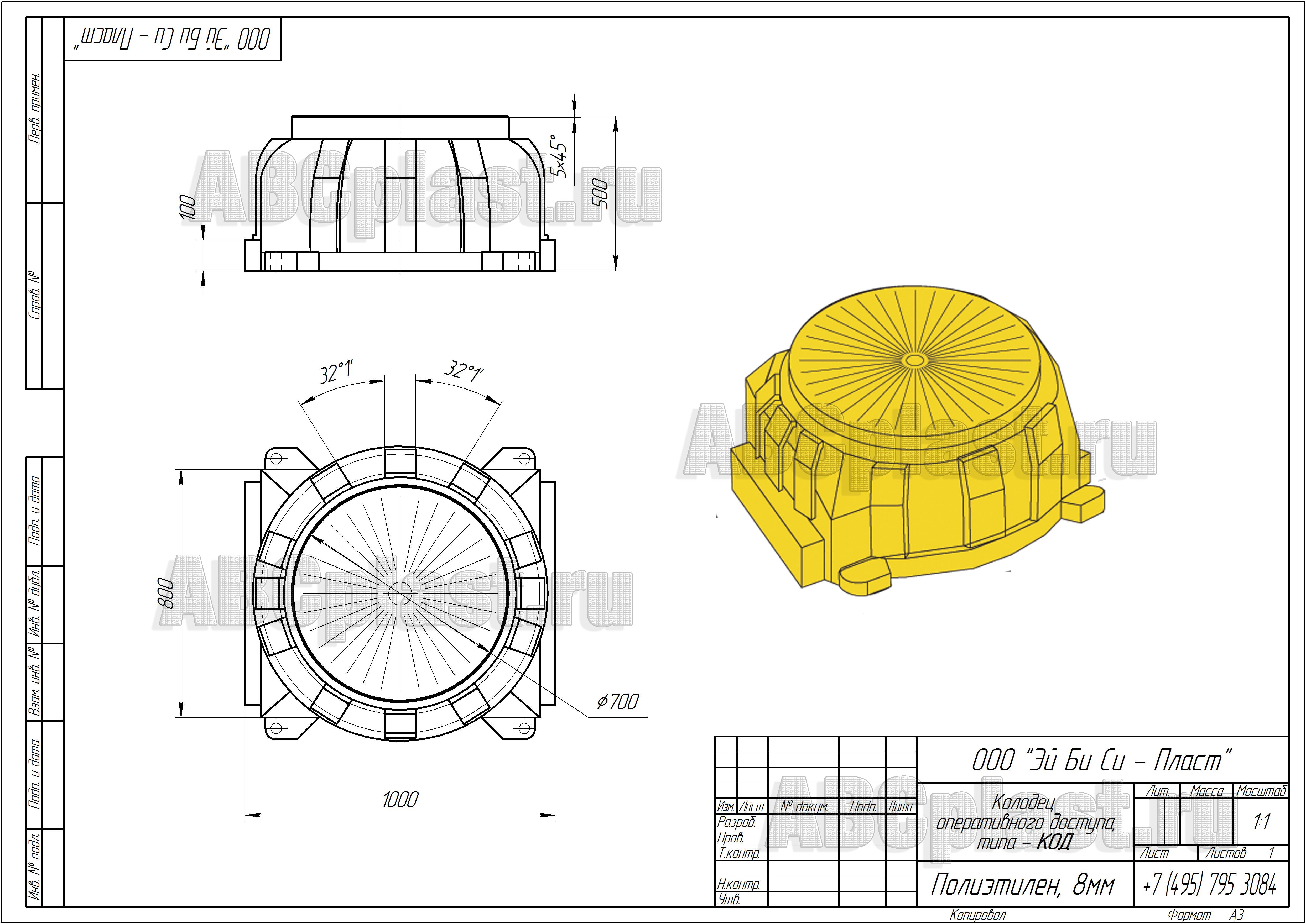 Кабельные пластиковые колодцы ККТМ-1 оснащены 6 (шестью) монтажными площадками для ввода распределительных полиэтиленовых труб с различных направлений под углом 120 или 60o.